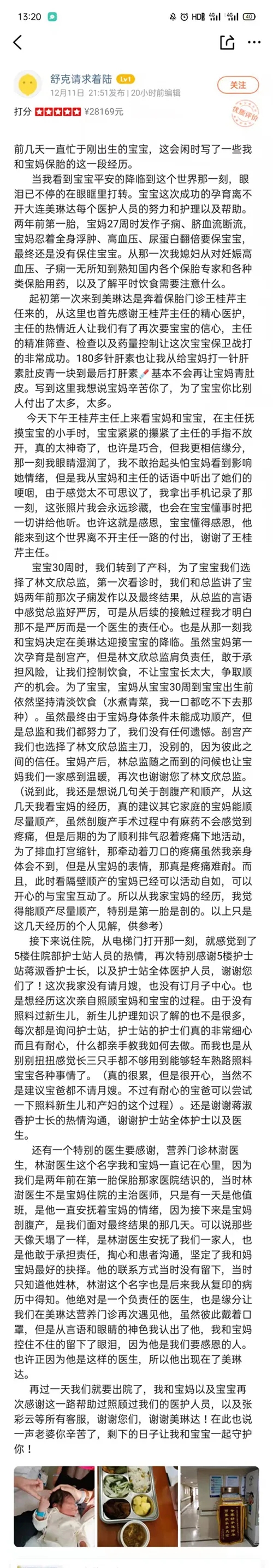 当我看到宝宝平安的降临到这个世界那一刻,眼泪已不停的在眼眶里打转。宝宝这次成功的孕育离不开大连美琳达每个医护人员的努力和护理以及帮助。两年前第一胎,宝妈27周时发作子痫、脐血流断流,宝妈忍着全身浮肿、高血压、尿蛋白翻倍要保宝宝,最终还是没有保住宝宝。从那一次我媳妇从对妊娠高血压、子痫一无所知到熟知国内各个保胎医生和各种类保胎用药,以及了解平时饮食需要注意什么。